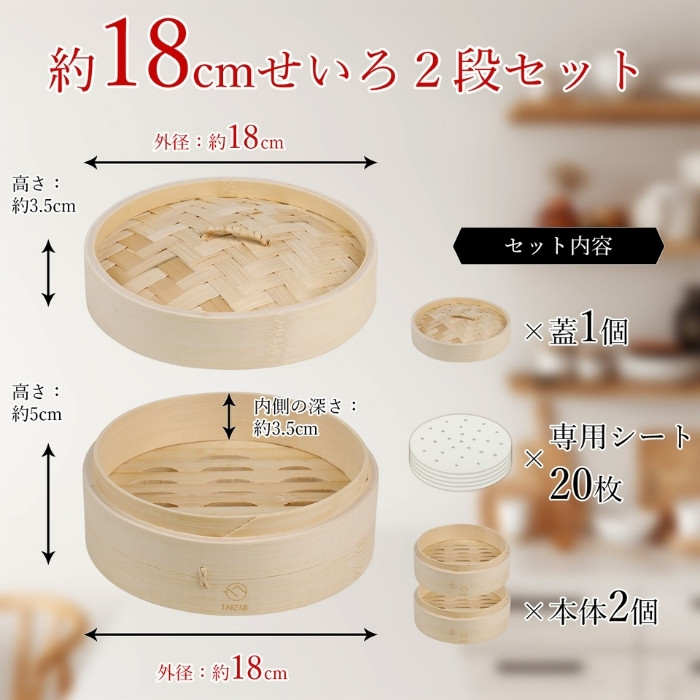 ご家庭で手軽に本格的な蒸し料理が出来るせいろの2段セットです。