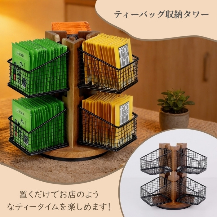 ティーバッグ収納タワー 置くだけでお店のようなティータイムを楽しめます!